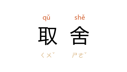 ⒈ 见“取舍”。亦作“取捨”。择用与弃置;选择。