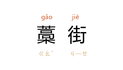 ⒈ 亦作“藳街”。 汉 时街名,在 长安 城南门内,为属国使节馆舍所在地。