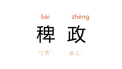 引《明史·流贼传序》:“虽以 武 之童昏,亟行稗政,中官倖夫,浊乱左右,而本根尚未尽拨,宰辅亦多老成。”李劼人 《大波》第三部第二章:“为今之计,只须把尚未释放的绅士,礼遣回家,把民怨甚深的官吏,严办几个,而后裁减一些捐税,(他举了一个例,如在 成都 每月发行一次的签捐彩票。)革除一些稗政,(他也举了一个例,如在 成都 开设的戏园和集中娼妓的 新化街。)则民心自安,民情自定。”