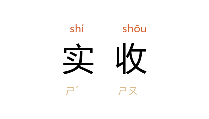 引《二十年目睹之怪现状·第六四回》:「本来各处办捐的老例,系先填一张实收;由捐局汇齐捐款,解到部里。」