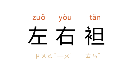 ⒈ 原意是露出左臂或右臂,以示偏护某一方。语本《史记·孝文本纪》。后称偏助一方为“左袒”,两无所助曰“不为左右袒”。 清 蒲松龄 《聊斋志异·珊瑚》:“母或怒以色,则 臧姑 怒以声。参见“左袒”、“左襢”。