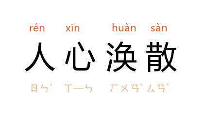⒈ 形容人心动荡离散。也作「人心涣漓」。