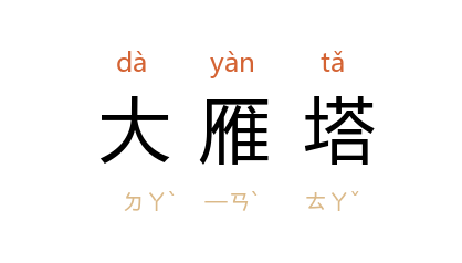 ⒈ 在陕西省西安市南和平门外慈恩寺内。公元652年,玄奘为贮藏印度取回的经像而建。原塔高五层,武则天时增为十层,后遭兵火,只存七层,高64米。为正方形楼阁式砖塔,气势雄伟。为全国重点文物保护单位。