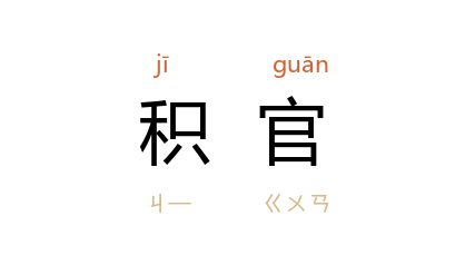 引《宋史·奸臣传三·汪伯彦》:“﹝ 伯彦 ﹞登进士第,积官为虞部郎官。”金 元好问 《资善大夫集庆军节度使蒲察公神道碑铭》:“﹝公﹞以某年月日春秋五十有二,薨於私第之正寝,去 河南 破不一年耳,积官资善大夫、 彭城郡开国侯。”元 欧阳玄 《许文正公神道碑》:“孙男六……次 从宸 积官监察御史、 山南 宪僉。”