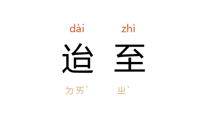 引《元史·文宗纪一》:“迨至 泰定,爵赏益滥。”清 蒲松龄 《祭丽宇韩先生文》:“迨至晚忘世味,早悟法门;恼脱十缠,心空五藴。”清 黄式权 《淞南梦影录》卷二:“迨至铜龙将尽,玉兔渐低,而青楼之姗姗来迟者,犹復兰麝烟迷,綺罗云集。”