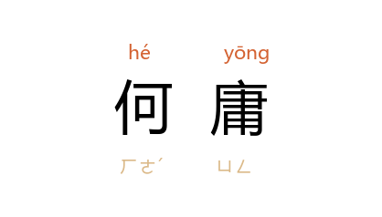引嵩 因乞骸骨。上慰 嵩 曰:‘朕未厌卿,卿何庸去?’”《新唐书·李景让传》:“景让 自右散骑常侍出为 浙西 观察使,母问行日, 景让 率然对:‘有日。’ 郑 曰:‘如是,吾方有事,未及行。’盖怒其不尝告也。且曰:‘已贵,何庸母行?’ 景让 重请罪,乃赦。”明 刘基 《旅兴》诗之三:“劳生谅何庸,顾为形所累。”