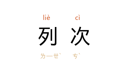 引《淮南子·诠言训》:“俎豆之列次,黍稷之先后,虽知弗教也。”《汉书·王吉传》:“朕以君有累世之美,故踰列次。”
