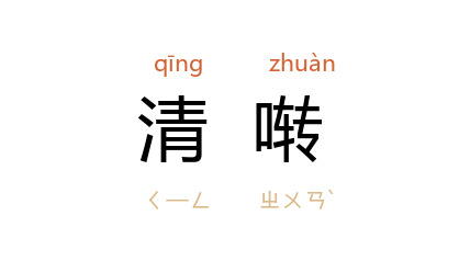 引南朝 梁 沉约 《郊居赋》:“驱四牡之低昂,响繁笳之清囀。”明 何景明 《画鹤赋》:“协云簫而清囀,随蜺驾以遥旋。”郭沫若 《行路难》中篇第二章:“主妇夫人很流丽地,很清脆地说着,真好像黄莺儿在花丛里清啭的一样。”