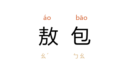 ⒈ 蒙古语。“堆子”的意思。又译作鄂博。 蒙古族 人做路标和界标的堆子,用石、土、草等堆成。旧时曾把敖包当做山神、路神的住地来祭祀。