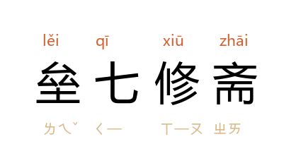 引元 关汉卿 《蝴蝶梦》第四折:“教我战篤速忙把孩儿拜,我与你收拾垒七修斋。”元 武汉臣 《老生儿》第一折:“我这里自裁划,也不索垒七波追斋,则那两件事敢消磨了我这半世的灾。”