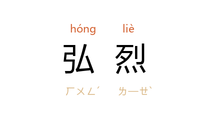 引《后汉书·卷三·肃宗孝章帝纪》:「朕以不德,受祖宗弘烈。」《三国演义·第八回》:「恢文武之大业,昭尔考之弘烈。」