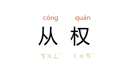 例如:「从权达变」、「从权处理」。