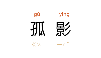引唐 杜牧 《早雁》诗:“仙掌月明孤影过,长门灯暗数声来。”宋 周邦彦 《倒犯·新月》词:“徘徊处,渐移深窈。何人正弄,孤影蹁躚西窗悄。”湘灵子 《轩亭冤·创会》:“谈平等,慕文明,休笑我孤影伶仃。”