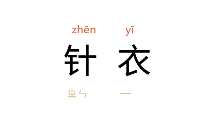 ⒈ 亦作“鍼衣”。藏针线用。用细竹条编成帘状,两面蒙上绮,拦腰缝一丝带,可以折转,把针线等包在里面。 马王堆 汉 墓有出土。