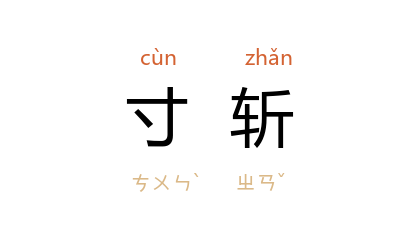 引唐 张鷟 《游仙窟》:“千看千意密,一见一怜深。但当把手子,寸斩亦甘心。”明 沉德符 《野获编补遗·台省·御史阿内侍》:“上( 宪宗 )报闻而已。 能(钱能 )之稔恶,天下所恨, 瑞 以宪臣奏保,寸斩不足蔽辜也。”