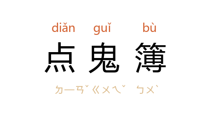 ⒈ 唐张鷟《朝野佥载》卷六:“时杨(杨炯)之为文,好以古人姓名连用,如'张平子之略谈,陆士衡之所记','潘安仁宜其陋矣,仲长统何足知之'。号为点鬼簿。”后用“点鬼簿”讥刺诗文的滥用古人姓名或堆砌故实。