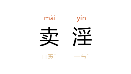 例如:「她为环境所迫,不得已才以卖淫为业。」