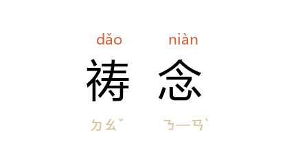 引曹禺 《王昭君》第三幕:“呼韩邪 摇摇头。他半跪着,用手托着前额,低下了头,仿佛对着 玉人 在祷念着什么。”《中国歌谣资料·河北民歌·碉堡像座枉死城》:“多少百姓受折磨,日夜祷念八路军。”