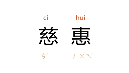 引《左传·成公十二年》:“於是乎有享宴之礼,享以训共俭,宴以示慈惠。共俭以行礼,而慈惠以布政。”汉 徐干 《中论·谴交》:“乡有大夫,必有聪明慈惠之人,使各掌其乡之政教禁令。”唐 韩愈 《顺宗实录五》:“皇太子某睿哲温文,宽和慈惠。”《西游记》第四七回:“虽则恩多还有怨,纵然慈惠却伤人。”柔石 《二月》一:“一副慈惠的微笑,在他两颊浮动着。”