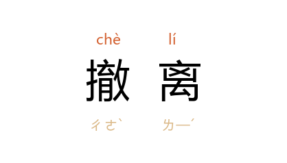 引杜鹏程 《在和平的日子里》第三章:“你把工人撤离有危险的地方。”京剧《杜鹃山》第五场:“敌众我寡,形势严重,马上撤离 杜鹃山。”