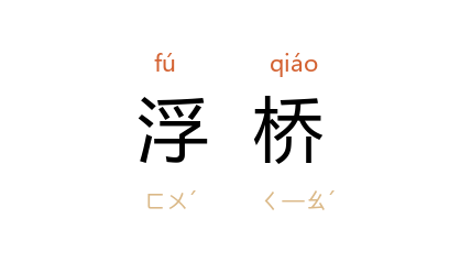 ⒈ 在并列的船、筏、浮箱或绳索上面铺木板而造成的桥。