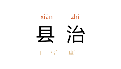 引《明史·李锡传》:“柳州 怀远,瑶、僮、伶、侗 环居之, 瑶 尤獷悍。侵据县治久,吏民率寓郡城。”清 姚鼐 《游媚笔泉记》:“桐城 之西北,连山殆数百里,及县治而迆平。”沈从文 《从文自传·我所生长的地方》:“这地方又名 凤凰厅,到 民国 后便改成了县治,名 凤凰县。”
