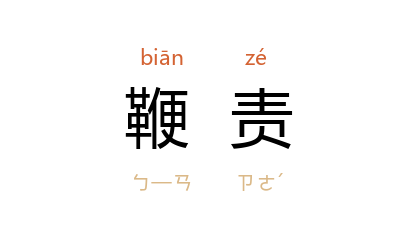 引胡希明 《百年前广州丝织工人的生活及其参加三元里抗英斗争的情怳·丝织工人的纪律》:“若果本馆人无理取闹者,更将原人鞭责,并革去馆底。”鲁迅 《华盖集续编·有趣的消息》:“怪不得锐气终于脱尽;脱尽犹可,还要看那‘笑吟吟’的‘讽刺’的‘天才’脸哩,这实在是对于灵魂的鞭责。”