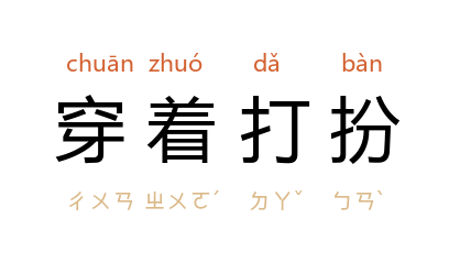 穿着打扮[ chuān zhuó dǎ bàn ]