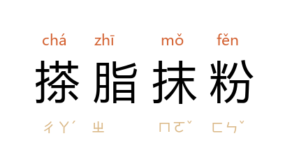 ⒈ 化妆打扮。明·孙仁孺也作「抹粉施脂」、「擦脂抹粉」。