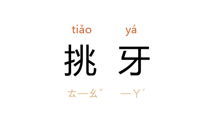 ⒉ 金或银制的牙签。古人将它和耳挖子、香茶饼盒串在一起,可作装饰品。也作「挑牙儿」。