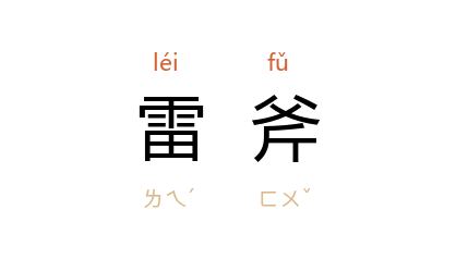 ⒈ 传说中雷神用以发霹雳的工具。其形如斧,故称。