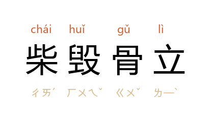 引《北史·卷八五·节义传·陈孝意传》:「在郡菜食斋居,朝夕哀临,每一发声,未尝不绝倒。柴毁骨立,见者哀之。」