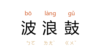 ⒈  一种儿童玩具。于小鼓两旁用短线各拴一颗坠子,握住手把转动,鼓面会因坠子敲击而发出咚咚的声响。以前卖货郎也拿来摇弄,以代替叫卖。也作「巴郎鼓」、「拨浪鼓」、「勃浪鼓」、「博郎鼓」、「播浪鼓」、「泼浪鼓」、「不琅鼓」。