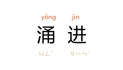 如:「每逢元宵节总有大批人潮涌进台南盐水区,观看放蜂炮的活动。」
