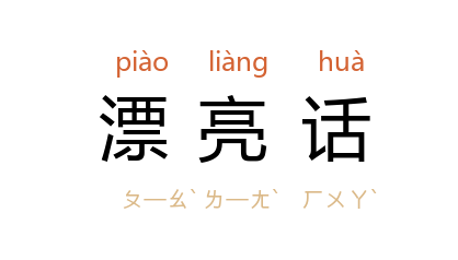 引巴金 《家》三六:“你们都可以向我说什么反抗,说什么奋斗。我又向那个去说这些漂亮话?”冯雪峰 《寓言·水牛和货车》:“不要跟说漂亮话的人竞赛,而要向老实工作的人学习。”