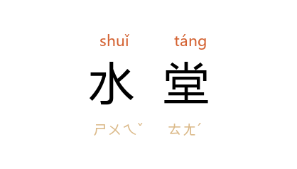 引《北齐书·河南王孝瑜传》:“孝瑜 遂於第作水堂、龙舟,植幡矟於舟上,数集诸弟宴射为乐。”唐 王建 《送吴谏议上饶州》诗:“浄扫水堂无侍女,下街唯共鹤殷勤。”前蜀 韦庄 《荷叶杯》词之二:“水堂西面画帘垂,携手暗相期。”