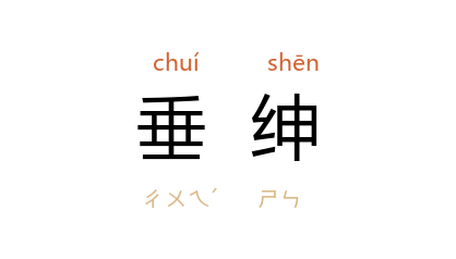 引《礼记·玉藻》:“凡侍於君,绅垂。”孔颖达 疏:“绅,大带也。身直则带倚,磐折则带垂。”言臣下侍君必恭。后借指在朝为臣。 宋 欧阳修 《相州昼锦堂记》:“垂绅正笏,不动声气,而措天下於 泰山 之安。”宋 黄庭坚 《留王郎》诗:“母慈家人肥,女慧男垂绅。”