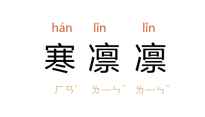 引元 武汉臣 《生金阁》第一折:“乱纷纷扯絮撏绵空内舞,疎剌剌风乱鼓,寒凛凛望长天一色粉粧铺。”《封神演义》第七三回:“寒凛凛,有甚三冬雪;冷颼颼,赛过九秋霜。”
