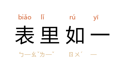 ⒈ 表面和内心一个样。形容思想和言行完全一致。