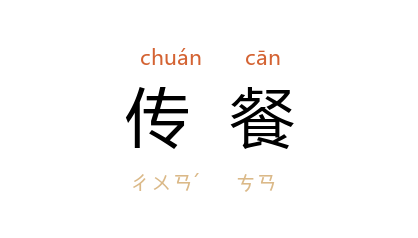 引《汉书·韩信传》:“令其裨将传餐,曰:‘今日破 赵 会食。’”颜师古 注:“服虔 曰:‘立驻传餐食也。’ 如淳 曰:‘小饭曰餐。’”宋 叶适 《宝谟阁待制徐公墓志铭》:“京师弹压,如传餐耳,况应办手掬食也,首善何所仰!”