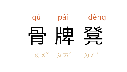 引李劼人 《大波》第一部第一章:“其中,摆有两张小小的方桌,十六张小小的骨牌凳。”邹韬奋 《经历》三六:“我们两个人被带到第一个囚室的外面,望望里面约有六七尺宽,十几尺深。排着一个两层的小铁床,一张小木椅(骨牌凳)。”