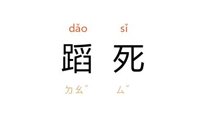 引宋 王令 《唐介》诗:“寄语琐琐媒孽子, 介 纵蹈死吾何悲!”《明史·忠义传序》:“迨 庄烈 之朝,运丁阳九,时则内外诸臣,或陨首封疆,或致命闕下,蹈死如归者尤众。”清 昭槤 《啸亭杂录·明非亡于党人》:“诸臣日谋恢復,蹈死如飴。”