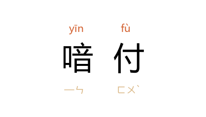 引元 李好古 《张生煮海》第四折:“你自喑付,则俺这水晶宫是一搭儿奢华处。”元 无名氏 《九世同居》第一折:“我这里频嘱付,孩儿每自喑伏,休得恣荒淫酒色欢娱。”