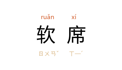 ⒈ 大陆地区称火车上比较舒适柔软的坐位或铺位。