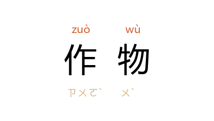 ⒈ 人工栽培的植物。依用途不同,分为农艺作物、园艺作物、森林作物等。通常所称作物,系指农艺作物。