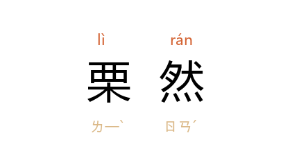 ⒉ 恐惧貌,瑟缩貌。栗,通“慄”。