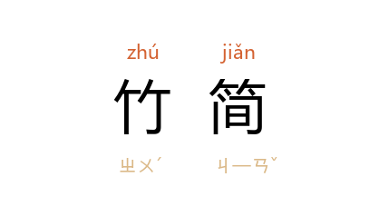 ⒈ 竹片。古代纸未发明前,将竹剖削成片,在上面刻写文字,称为「竹简」。