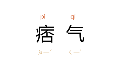 引《难经·五十六难》:“脾之积名曰痞气,在胃脘,覆大如盘,久不愈,令人四肢不收,发黄疸,饮食不为肌肤。”王九思 集注引 杨玄操 曰:“积,盖也。言血脉不行,积盖成病也……痞,否也。言否结成积也。”唐 柳宗元 《与杨京兆凭书》:“一二年来,痞气尤甚,加以众疾,动作不常。”明 李时珍 《本草纲目·百病主治药上·蕤核》:“破心下结痰痞气。”