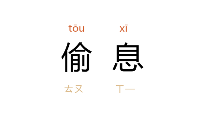引清 陈田 《明诗纪事辛籤·黄端伯》:“或劝削髮为僧归 江西,答曰:‘临难毋苟免,圣人之言也,可藉口释氏偷息人间耶!’”媮息:偷生;苟安。 清 唐孙华 《夏重谈金陵旧事》诗:“江 表张黄旗,王气销赤帜。媮息仅一年,传闻有二异。”金一 《心声》:“于斯时也,僝焉媮息,简焉不得日,乃有警旦之士,唤大魘而使之觉。”