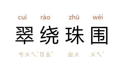 亦作“翠围珠绕”、“翠围珠裹”。 《金瓶梅词话》第四六回:“听一派凤管鸞簫,见一簇翠围珠绕。”